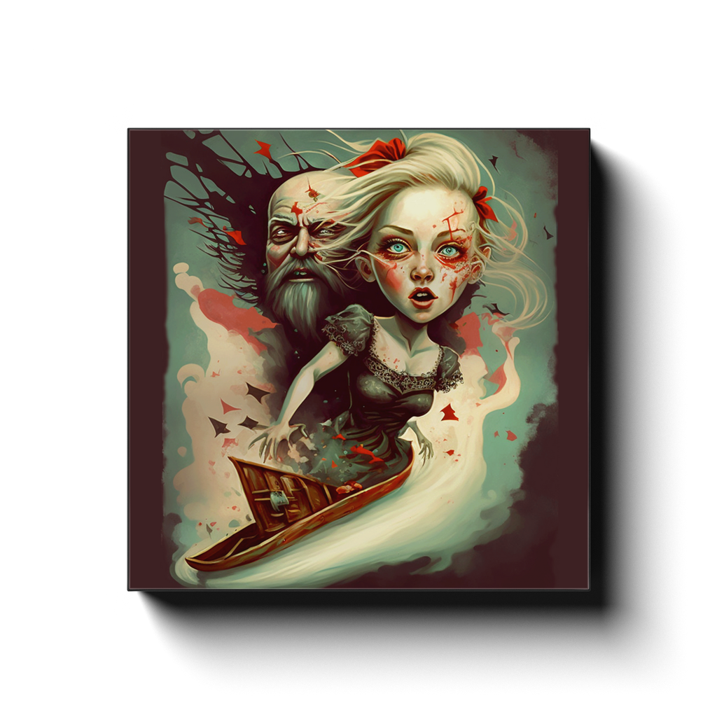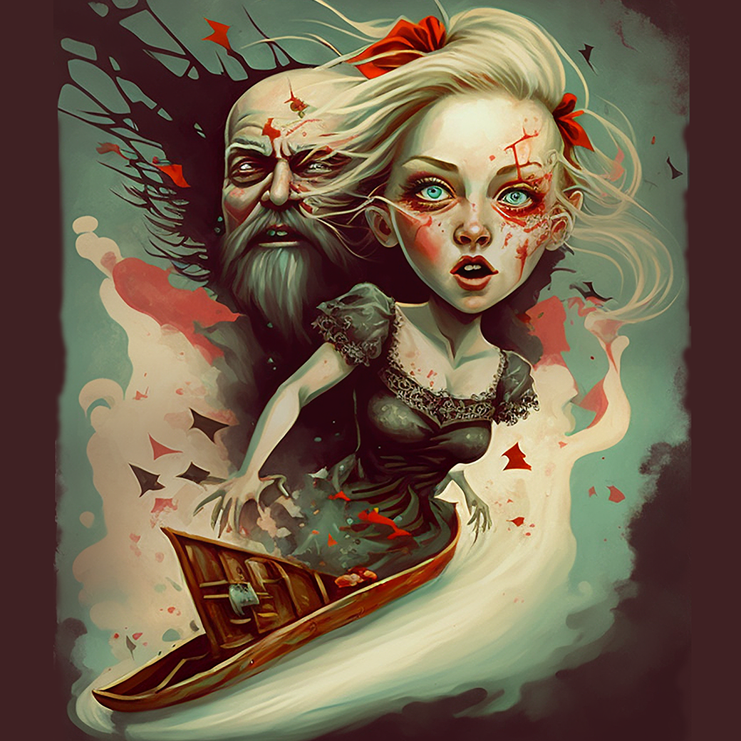 Gothic lowbrow Santa sleigh ride is a piece of art that combines elements of the gothic and lowbrow styles with the traditional image of Santa Claus and his sleigh. It is likely to depict Santa, who is traditionally depicted as a jolly old man in a red suit, in a darker and more sinister light, possibly incorporating gothic or horror-themed elements such as bats, spiders, or skeletons. The sleigh may also be depicted in a stylized or surreal way, incorporating elements of the gothic and lowbrow styles. The overall theme of the art piece is likely to be a twisted or unconventional take on the traditional image of Santa and his sleigh, combining elements of the gothic and lowbrow styles with a festive holiday theme.